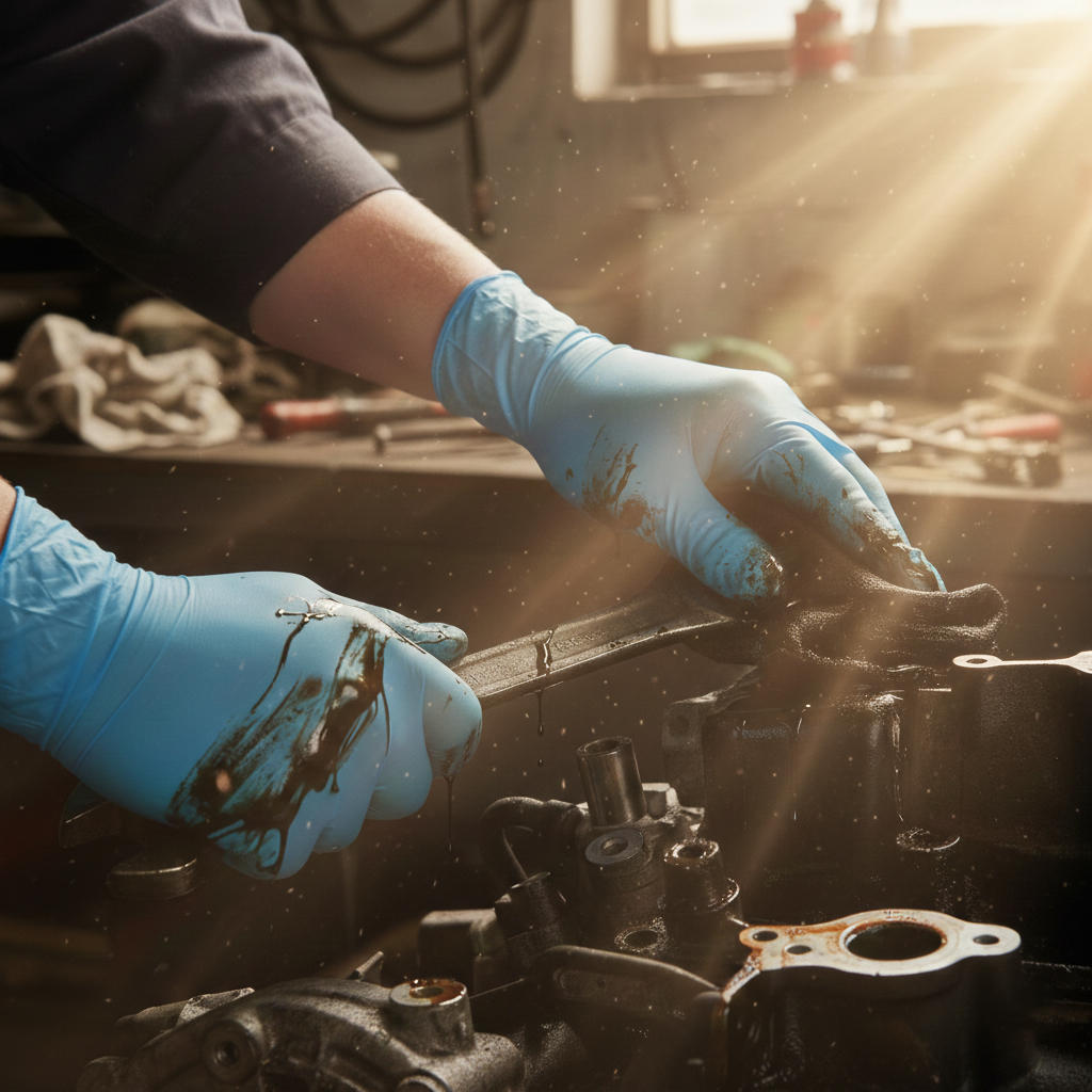 Blå pudderfri nitril engangshansker. Teksturerte fingertupper for godt grep. Høy slitestyrke og elastisitet.