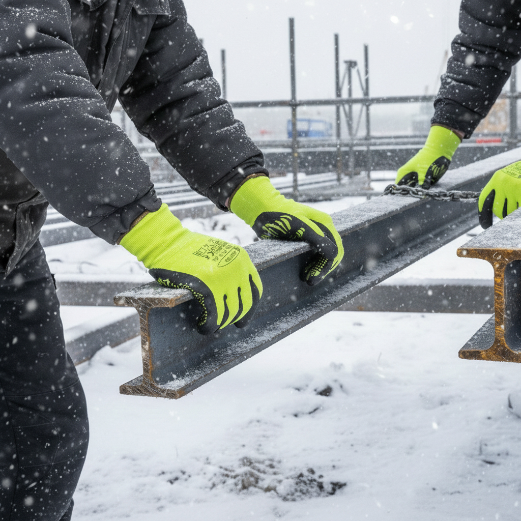 En vinterforet hanske i neonfarget nylon med akrylfor og skumbelegg i sort nitril. Hansken har et neonfarget gripemønster som gir godt grep. Varm og behagelig under kalde forhold.